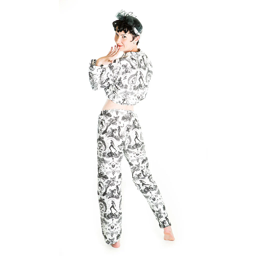 At first glance this Victorian toile is a traditional classic. But look closer, you'll see the scene is a bit steamy. Heat things up with this pastoral scene of a kinky walk in the park where ladies are using rope to tie their lovers and a good-natured spanking is around the corner. Take a walk on the wild side with these Fetish al Fresco Toile Pajama Sets.
